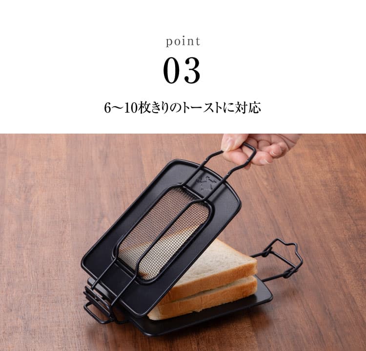 6~10枚きりのトーストに対応し、食パンのミミを切らずに食材をはさむだけで手軽にホットサンドをお楽しみいただけます。