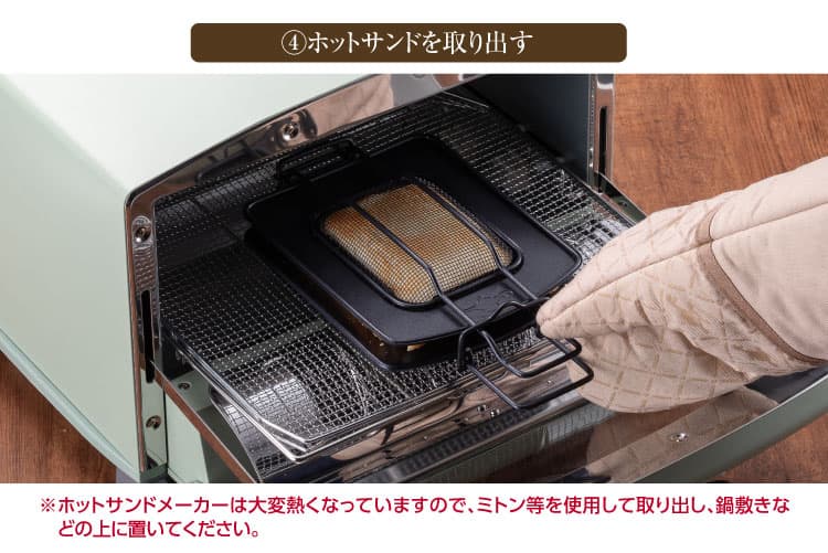 庫内から取り出しロックを外して、ホットサンドを取り出す。